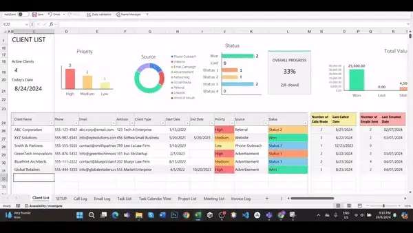 Say goodbye to scattered client data and hello to effortless organization with the Smart Client Manager CRM β your ultimate all-in-one Excel-based dashboard designed for small businesses, freelancers, and entrepreneurs.